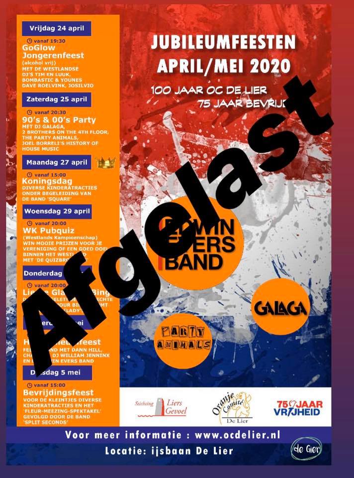 Deze regels gelden tot minimaal 1 juni, waardoor wij door overmacht genoodzaakt zijn om alle april mei evenementen en activiteiten af te gelasten. Dit betreuren we uiteraard ten zeerste.