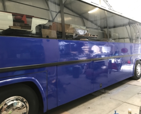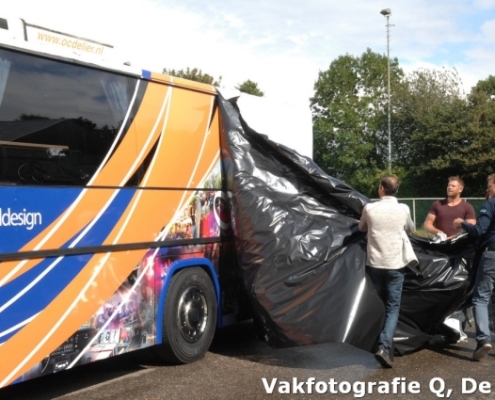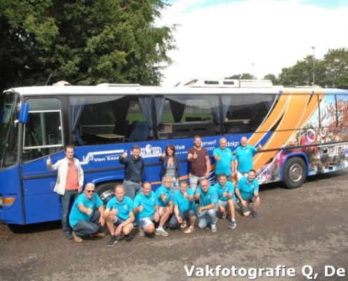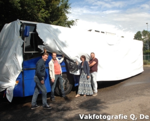 Het is goed de namen te noemen van de mensen die ons enorm hebbengeholpen. We noemen: Blue sport & workwear, Garage van Essen, Bijldesign, Klaas van der Eijk bandenservice, PE Sound, Lagerwerf wonen, Supair Services en niet te vergeten onze vrijwilligers”. Ben je nieuwsgierig geworden na dit verhaal en wil je ons kroonjuweel van dichtbij bekijken, kom dan tijdens de feestweek met eigen ogen zien hoe mooi de bus is geworden. Zet wel voor alle zekerheid een zonnebril op, want je zou je ogen kunnen verstuiken op al dat moois.